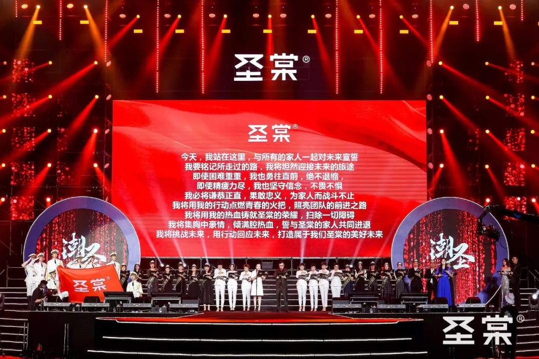 一群穿着古代盔甲的士兵,手持宝剑守卫着我们美丽的圣棠创始人—吴小璐女士和帅气的圣棠董事长—陈俊峰先生一起霸气进场。随后,圣棠6大美丽的运营女神们也闪亮登场,圣棠万人明星演唱会正式启幕!